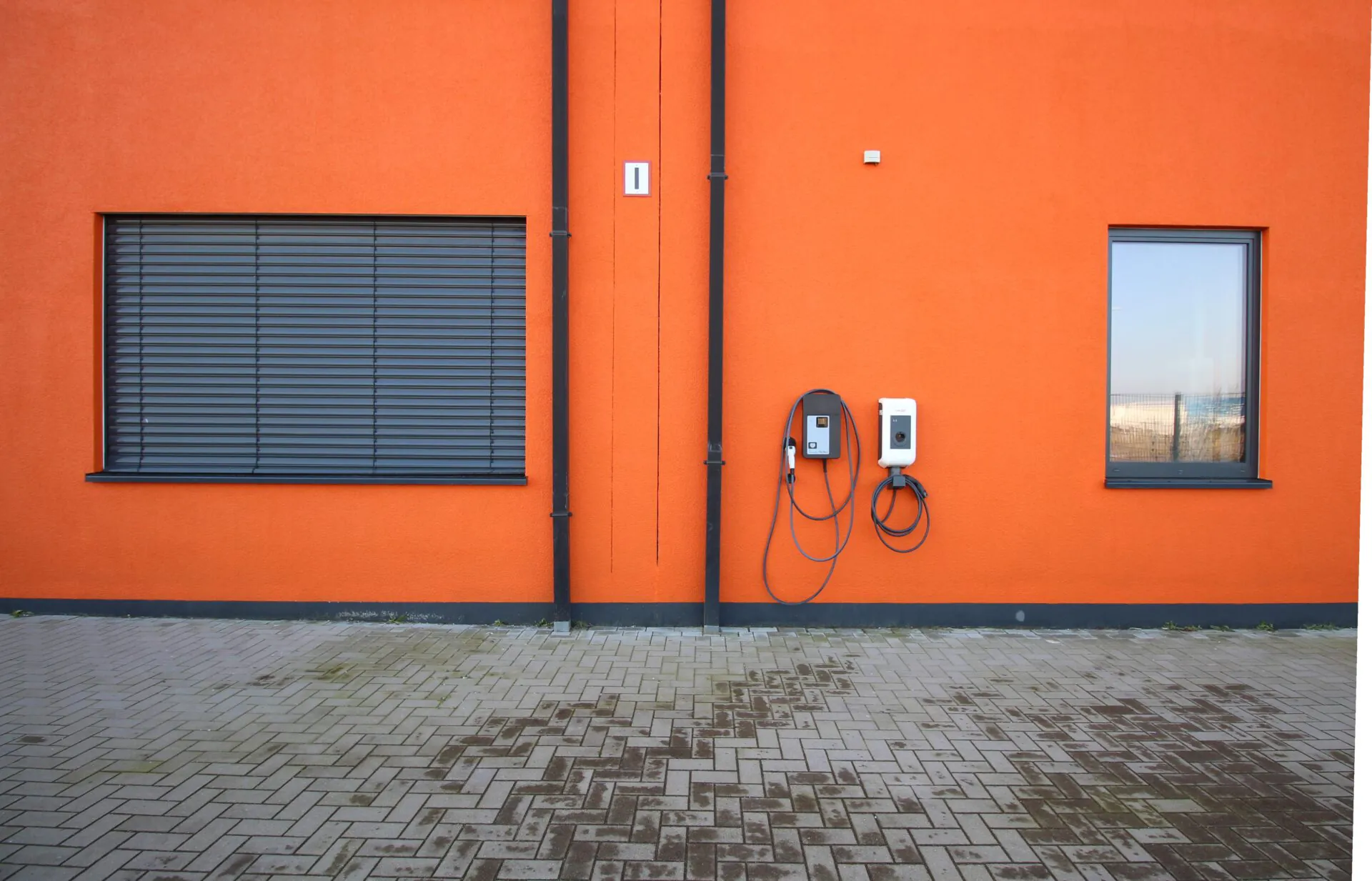 Vier Ladeeinheiten für Elektrofahrzeuge auf dem Hof