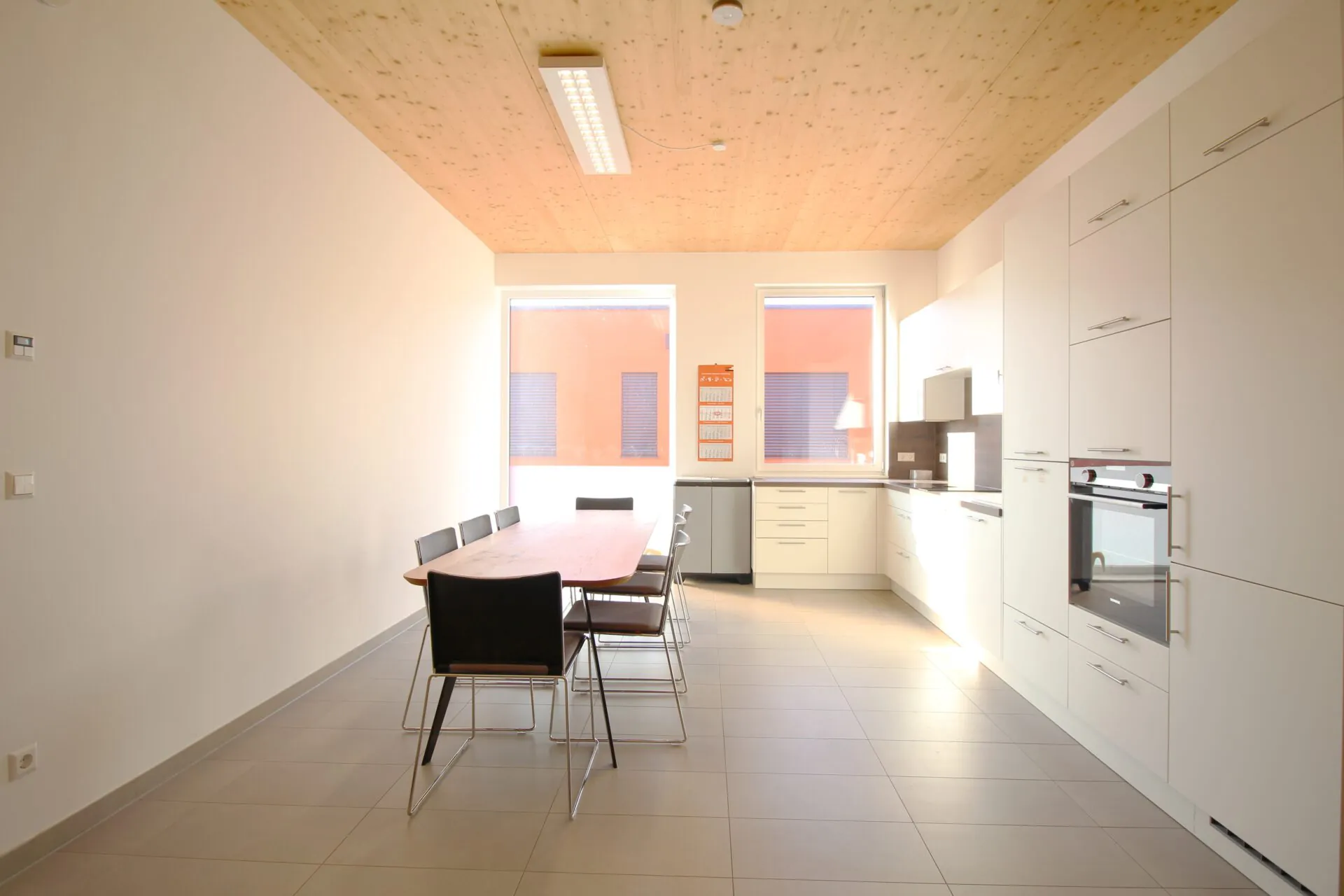 Die Immobilie verfügt über eine moderne Küche, die ideal für Pausen, Verpflegung und kleinere Mahlzeiten genutzt werden kann. Praktisch angeordnet und funktional ausgestattet, bietet sie Komfort für Mitarbeiter und trägt zu einem angenehmen Arbeitsumfeld bei.